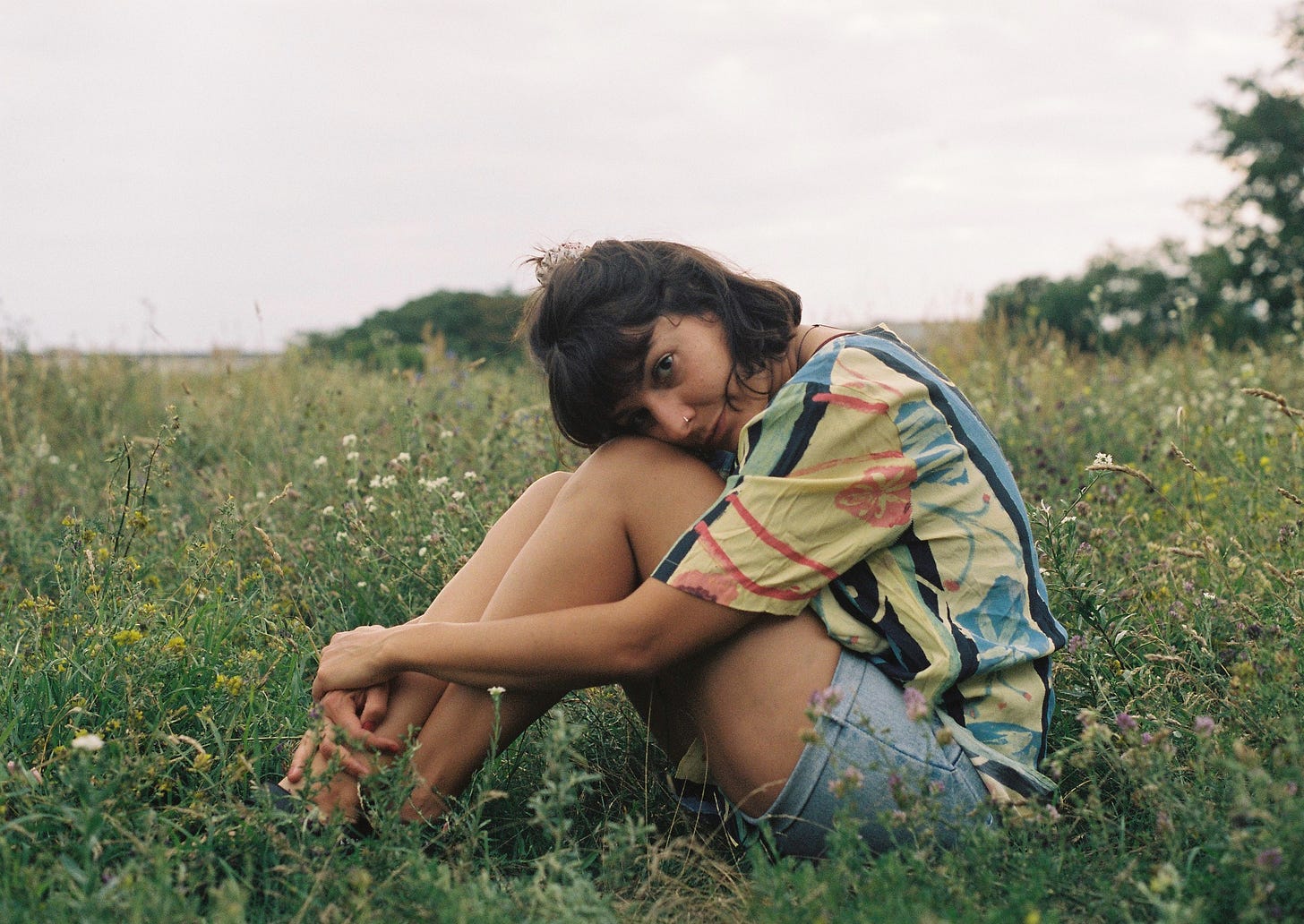into the grass, how to kneel down in the grass,